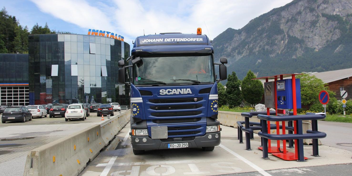 Vor der Brenner-Überfahrt können Fahrer den Lkw-Reifendruck messen und Gewichtskontrollen durchführen