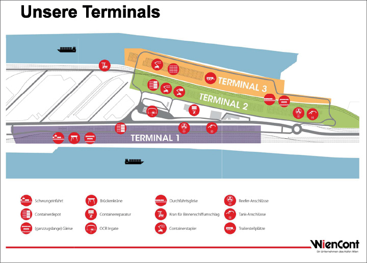 „Unser trimodales Terminal im Hafen Freudenau verbindet die drei wichtigsten Transportwege Schiene, Wasser und Straße. Modernste Technologien, eine einzigartige Schwungeinfahrt und ein top-ausgebildetes Team ermöglichen uns die Abwicklung aller Arten von Container-/Trailer-Transporten“, informiert das Unternehmen in einem Folder. So erreiche man im Bereich Logistik höchstes Maß an Flexibilität bei gleichzeitiger maximaler Schonung der Umwelt.